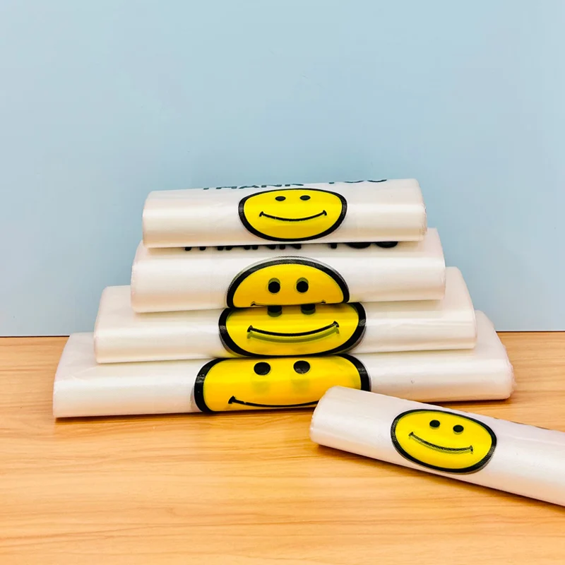 두꺼운 투명 스마일 비닐 가방, 상업용 도매 식품 테이크아웃 강아지 가방...