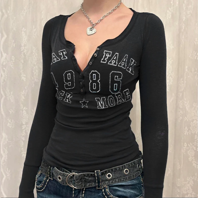 여성용 블랙 티셔츠, 레터 프린트 스트리트웨어, 긴팔 O넥 바디콘, 섹시...