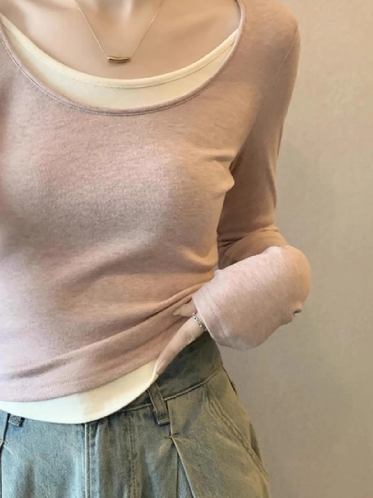 슬림핏 티셔츠 긴팔 U넥 슬림핏 긴팔 U넥 슬림핏 티셔츠 긴팔 티셔츠 U...
